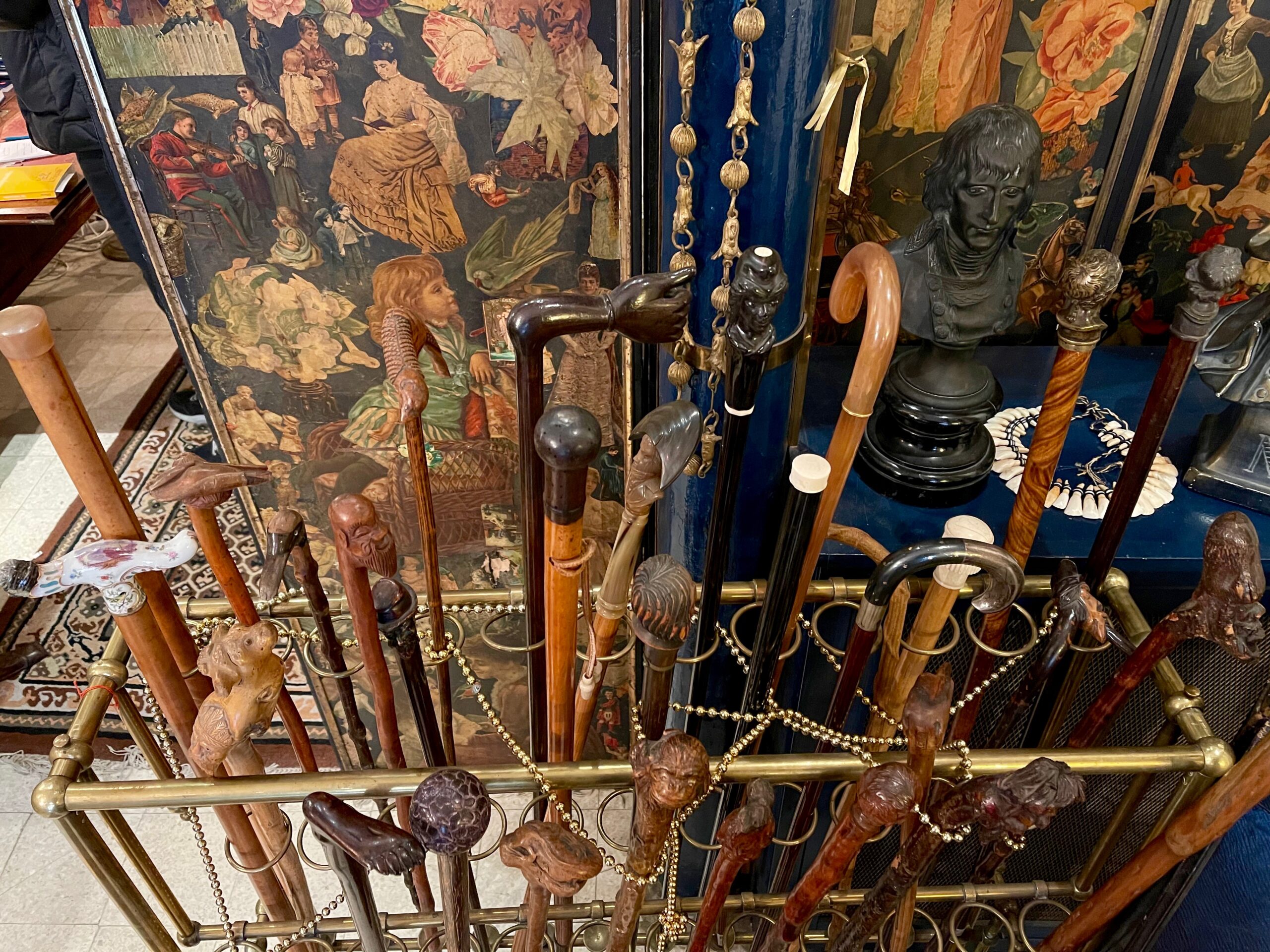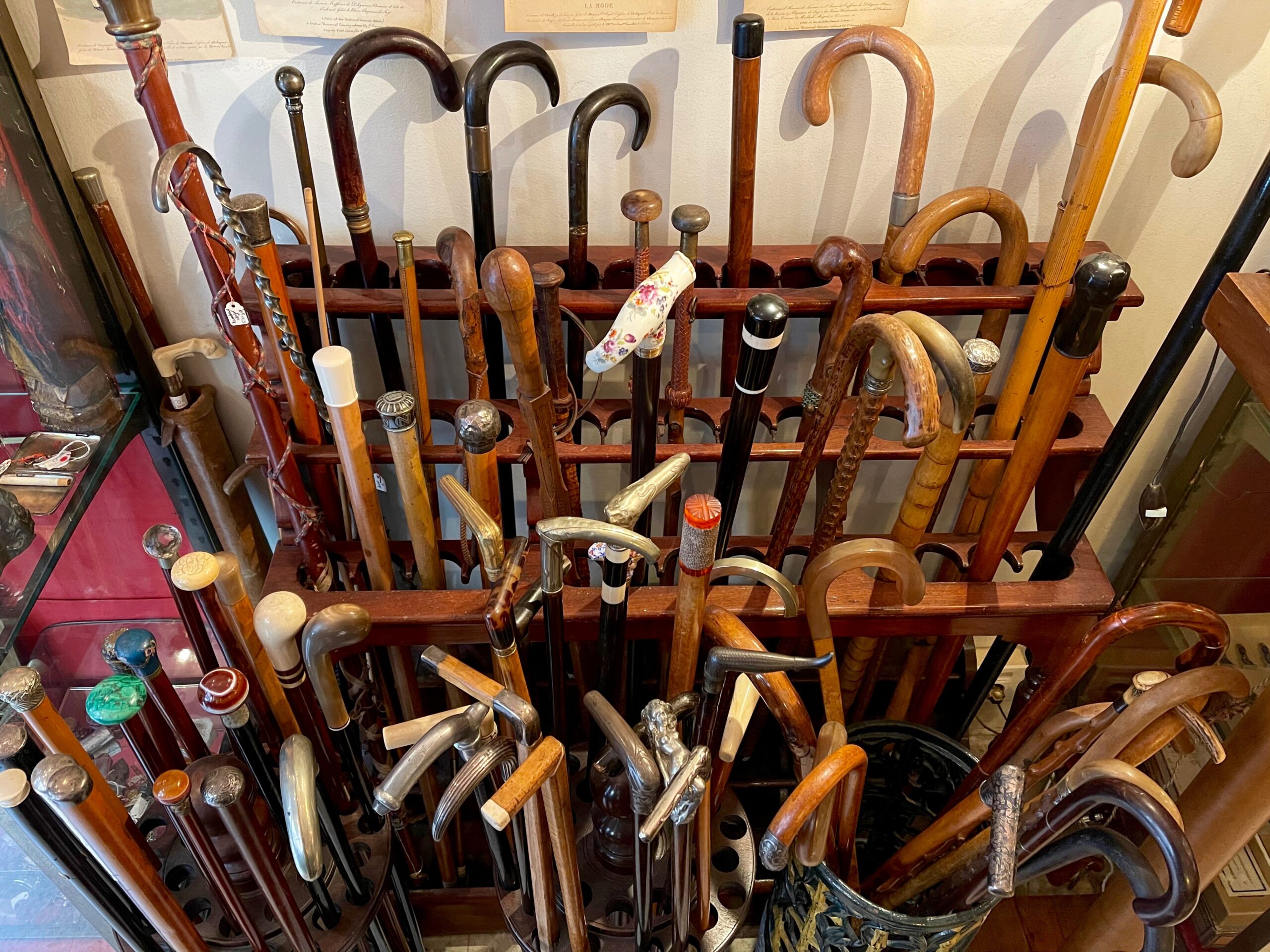 -les cannes anciennes étaient la spécialité de Lydia, sa collection est intacte avec les classiques, les monoxyles, les cannes d’art populaire, les cannes à système